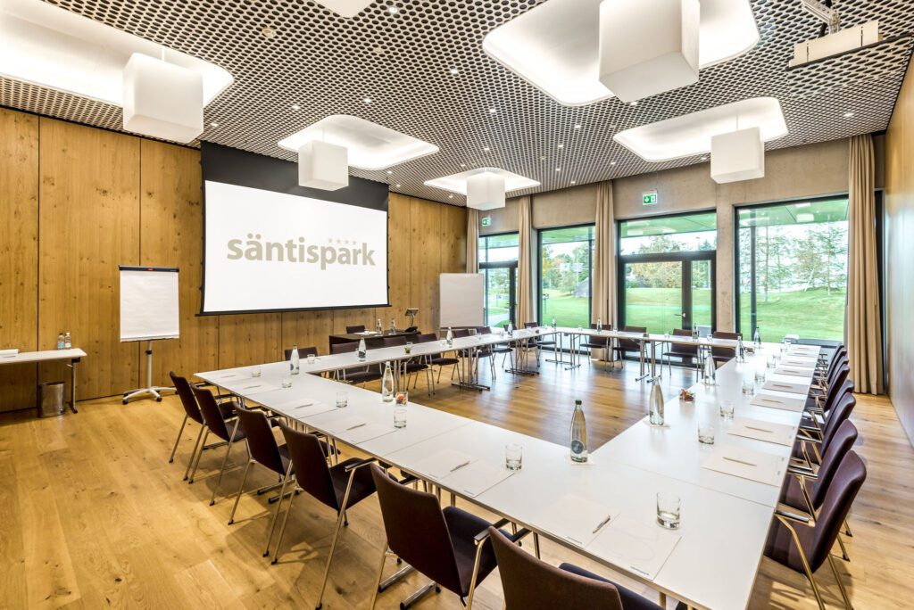 Our hotel impresses with its hospitality, spacious rooms, Säntis view, culinary highlights as well as our modern “Event Area” for meetings and celebrations on a large or small scale. On an area of 640 m2 you will find nine flexibly configurable rooms for events of all kinds. Some of these can be individually adapted to your needs. The state-of-the-art infrastructure at Revier Hotel Säntispark St.Gallen offers you a stylish and professional setting for your event.